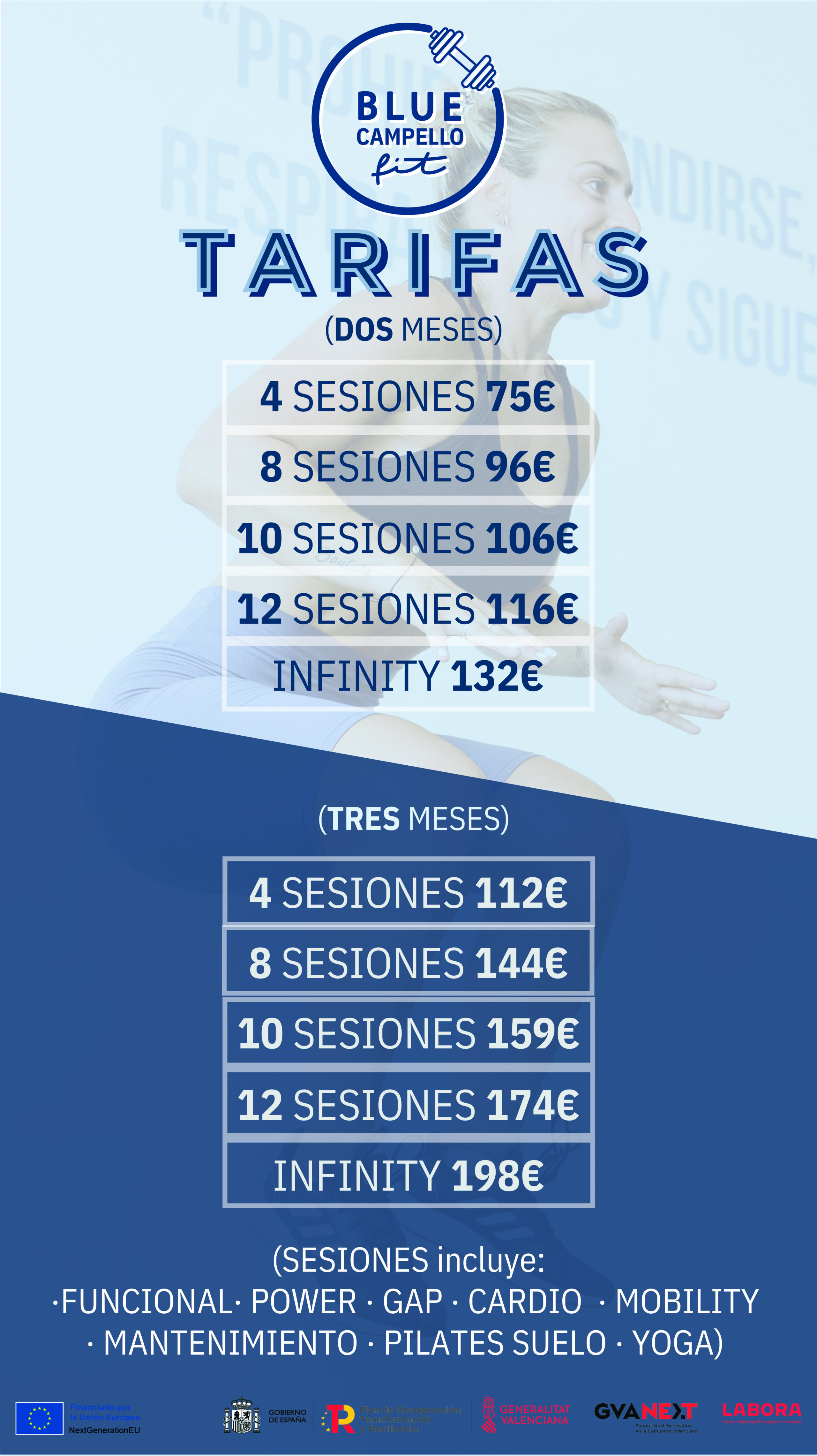 ¡Por supuesto! En Blue Campello Fit, ofrecemos tu primera clase totalmente gratuita para que puedas experimentar directamente nuestra oferta y ambiente. Visítanos en cualquiera de nuestras dos sedes: Avenida Jaime Primero el Conquistador, nº 16 (Playa) o Avenida Generalitat, nº 69 (Pueblo).
